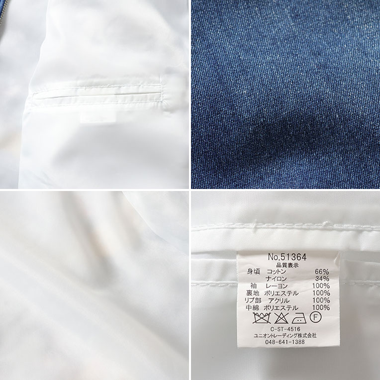 | 素材 | 身頃 コットン66% ナイロン34% / 袖 レーヨン100% / 裏地 ポリエステル100% / リブ部 アクリル100% / 中綿 ポリエステル100% |