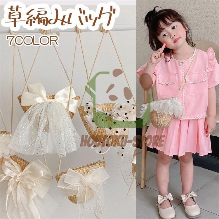 ショルダーバッグ 子供 キッズ レース 草編みバッグ かばん 麦わら 鞄 かごバッグ 肩掛け 手提げ トートバッグ バッグ お出かけ 海 旅行 夏 ギフト