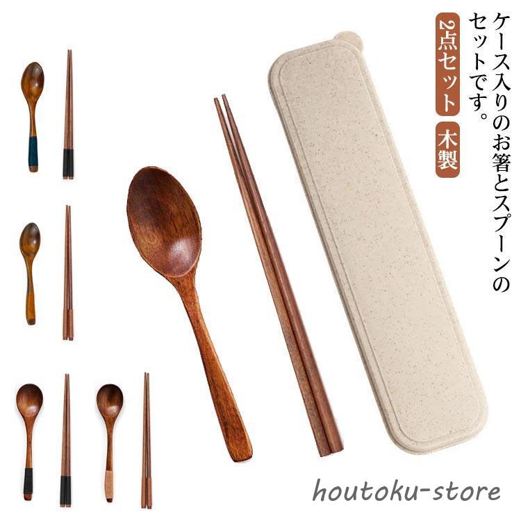 木製 お箸・スプーン 2点セット お弁当 持ちやすい ケース付き セット ランチグッズ 木 木目 お弁当グッズ 旅行 お弁当箸 箸 大人 学生 キッズ