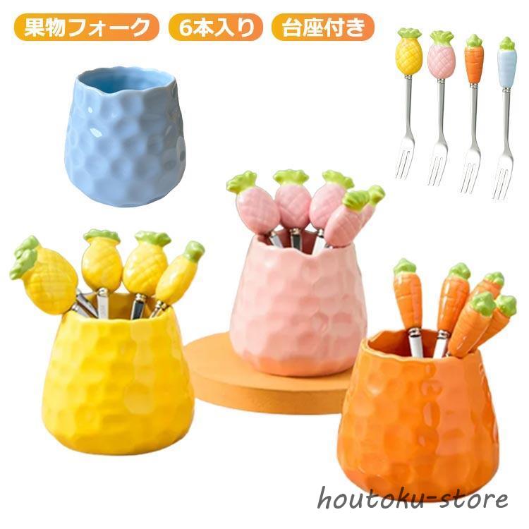 フォーク 5本入り カップ*1点 フォーク*4点 フルーツフォーク フルーツピック ミニフォーク フードピックセット 台座付き カトラリー