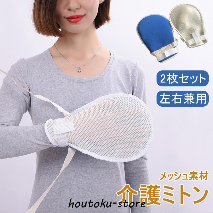 介護ミトン 介護用 ミトン グローブ 2枚セット 介護手袋 左右兼用 片面メッシュ軽量 自傷 ひっかき 防止 掻きむしり 認知症 経鼻栄養 手袋 保護