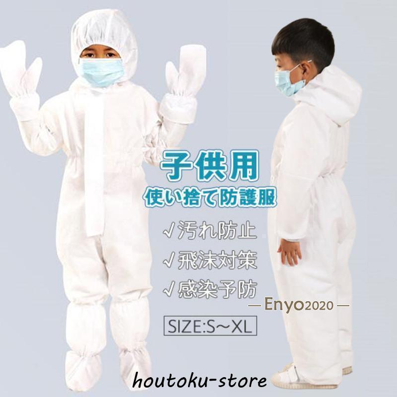 子供用使い捨て防護服 作業服 ワークウエア 足カバー付け 手袋付け 化学防護服 作業着 つなぎ 保護 汚れ防止 飛沫対策 感染予防