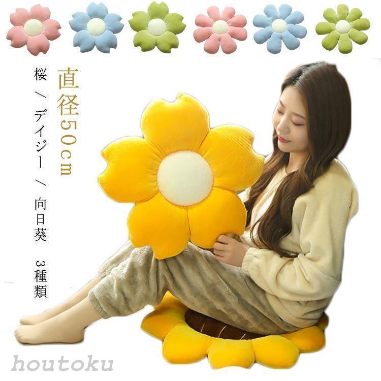 リトル デイジー クツション フラワー スロー ピロー クッション 直径50cm 桜 デイジー 向日葵 チェア クッション 車 クッション 装飾 オフ