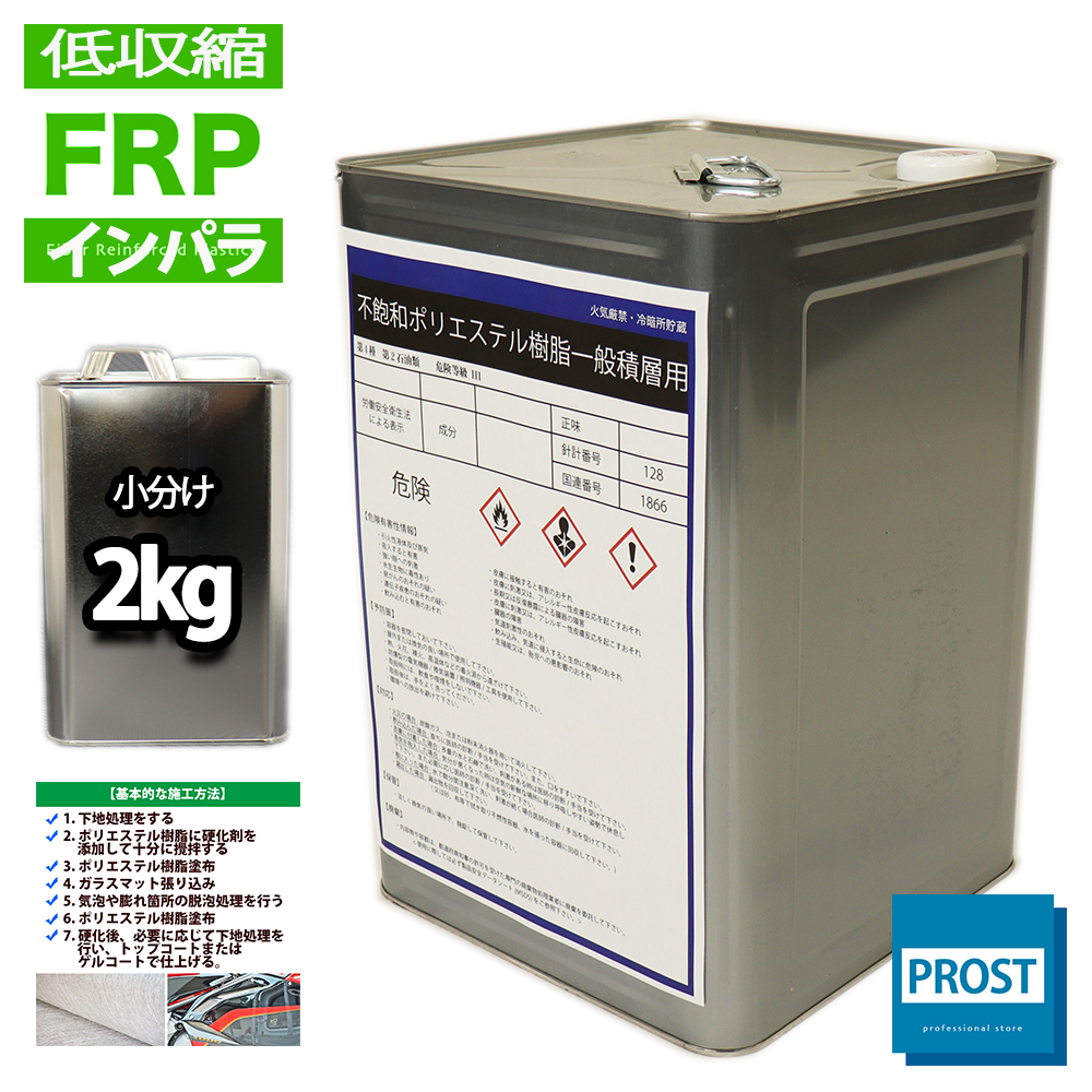低収縮タイプ FRPポリエステル樹脂2kg 一般積層用 インパラフィン FRP樹脂 補修