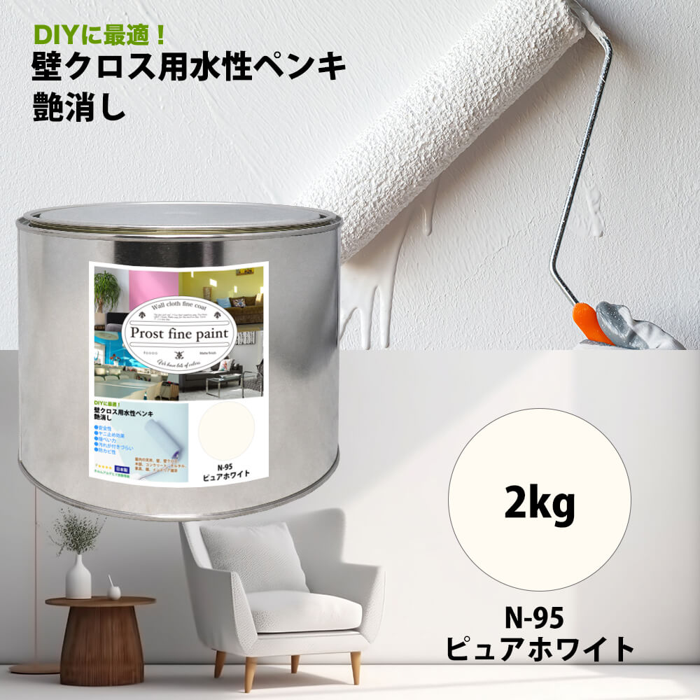 ペンキ 壁クロス用 水性塗料 N-95 ピュアホワイト 2kg/艶消し 壁 天井 壁紙 壁クロス ファインペイント つや消し 白