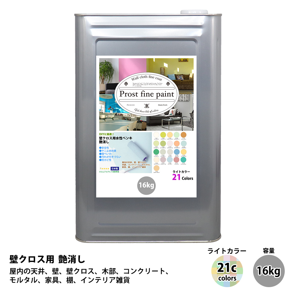 ペンキ 壁クロス用 水性塗料 つや消し ファインペイント ライトカラー 全21色 16kg / 屋内 壁 天井