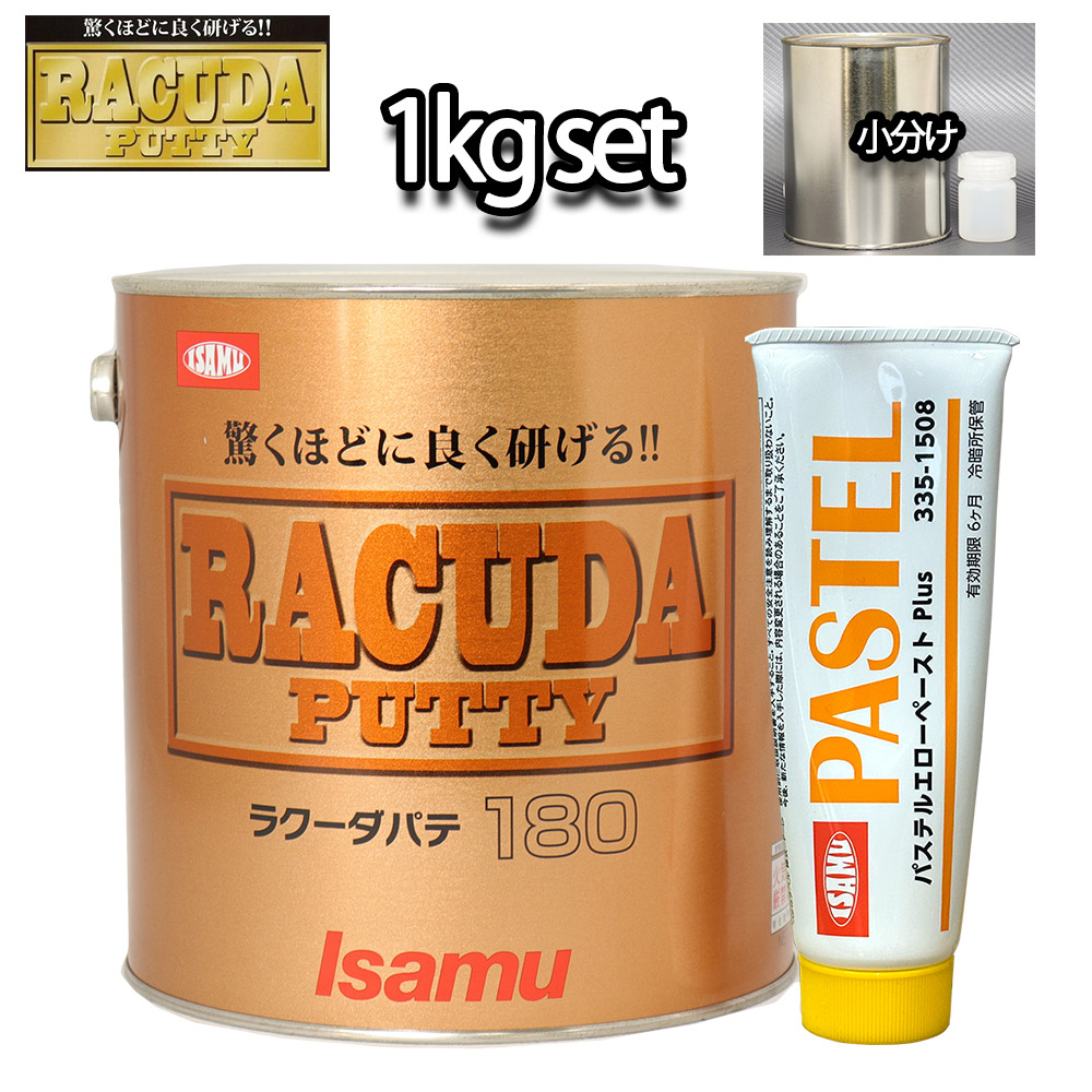 驚くほどに良く研げる! イサム ラクーダ ♯180 ポリパテ 小分け 1kgセット/標準 膜厚2mm 鈑金/補修/ウレタン塗料