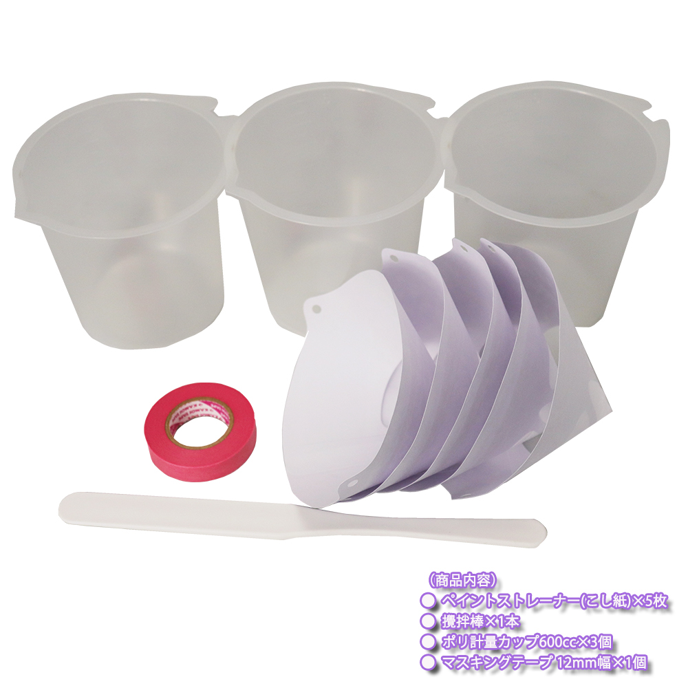 スプレーガン塗装用道具600ccセット(ストレーナー/計量カップ600cc/攪拌棒/マスキングテープ) / 自動車 ウレタン塗料