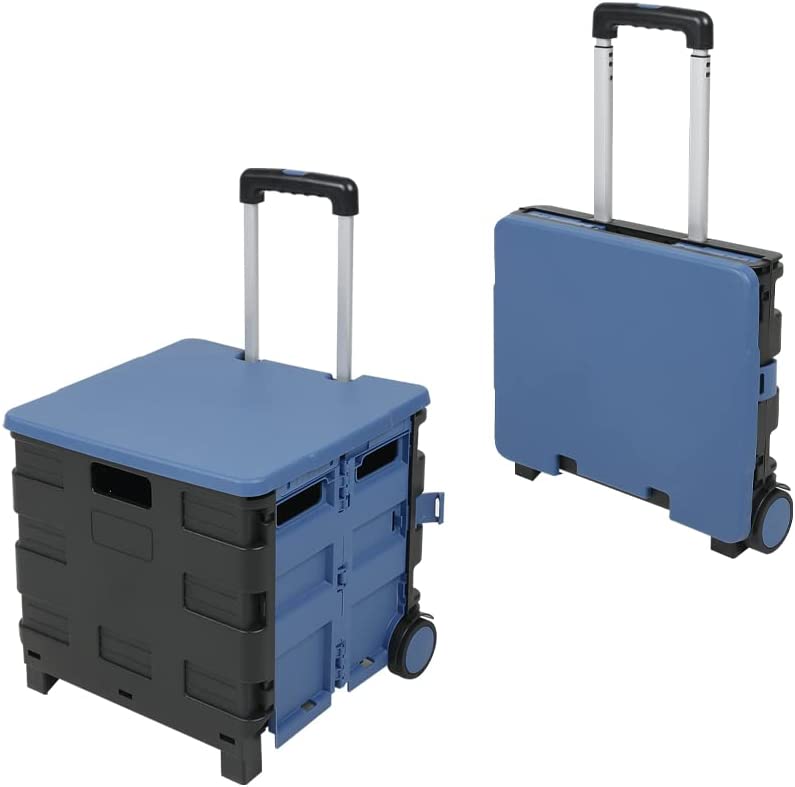 キャリーカート 折りたたみ ふた付き ショッピングカート ストッパー付き 360°回転 2輪静音キャスター 耐荷重30KG 45L 軽量