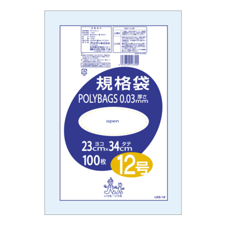 ポリバッグ 規格袋 12号 0.03mm 透明 100P L03-12 230×340mm 1ケース5000枚入 000197101 オルディ ポリ袋