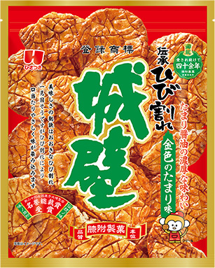 「伝承ひび割れ」たまりの濃厚な味わい。美味しさの秘訣は大きなひび割れ。一見堅そうですがひび割れにより口当たりが優しく味が染み込みます。