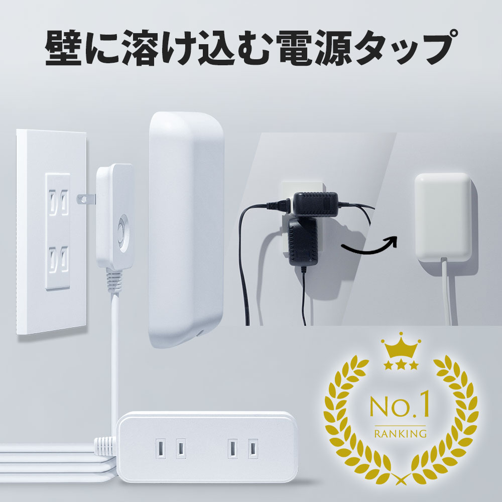 【壁にとけこむ 電源タップ 】パッと取り付けて生活感をなくす!薄型コンセントカバー付き電源タップ fitta (フィッタ)。ご家庭はもちろん、オフィスや店舗などあらゆるシーンのコンセント周りをスッキリ美しく。