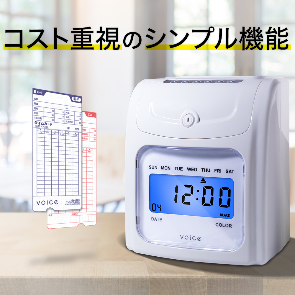 付属品:タイムレコーダー本体、取扱説明書、鍵 * 2本、タイムカード * 200枚、取り換え用インクリボンカセット * 1個
