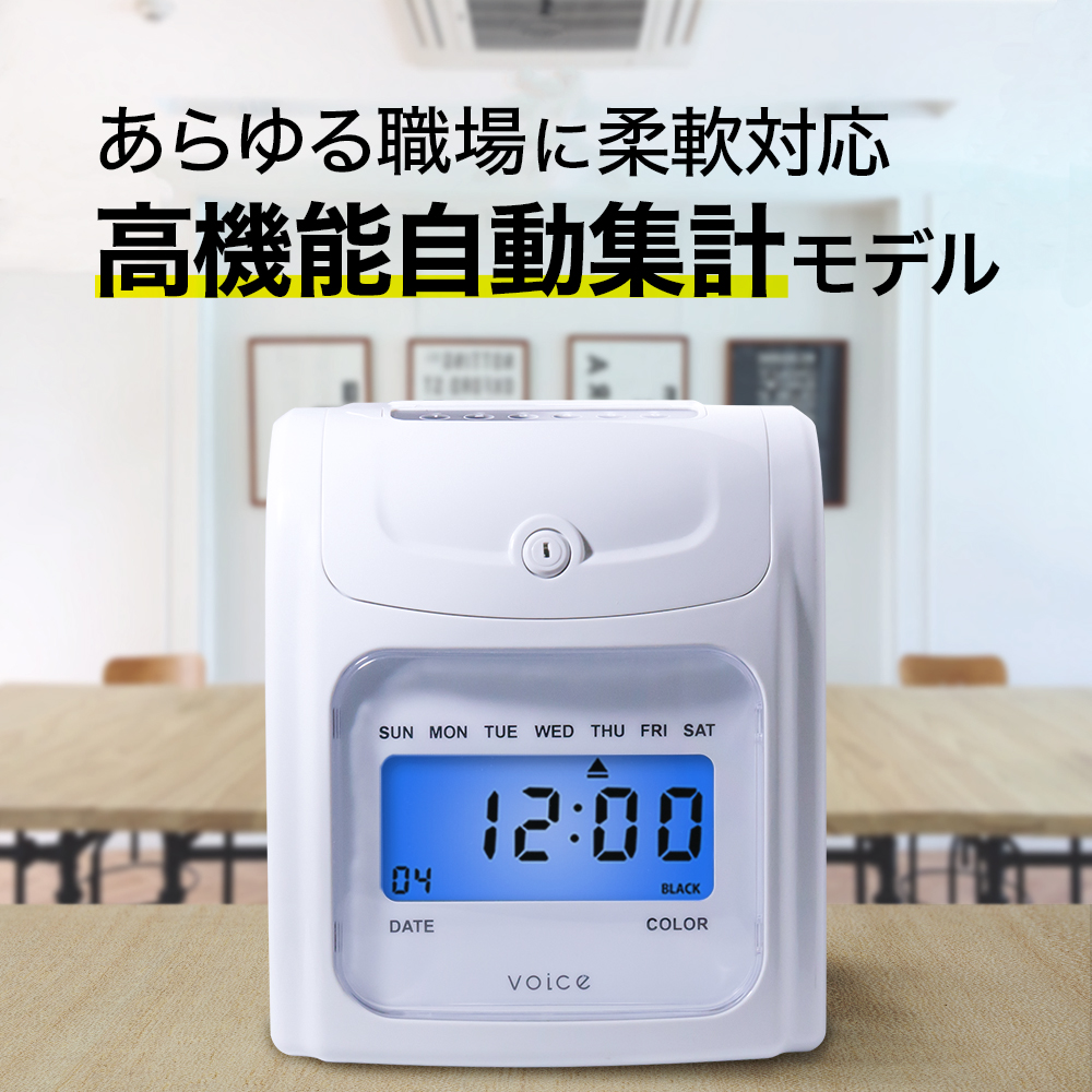 付属品:タイムレコーダー本体、取扱説明書、初回設定マニュアル、鍵 * 2本、タイムカード * 160枚、取り換え用インクリボンカセット * 1個
