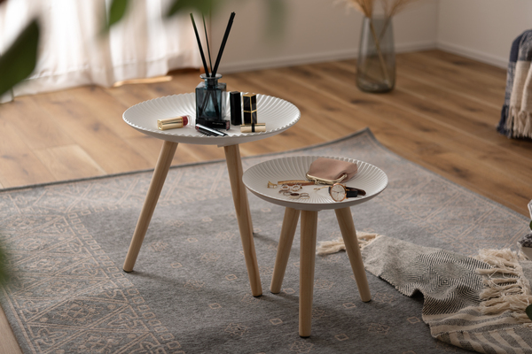ベッドサイドテーブルや洗面所などの小物置きとしても。