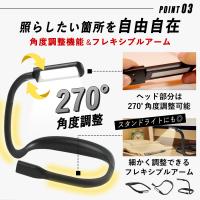フレキシブルアーム採用で、ライトの照射角度や方向も自由自在。
