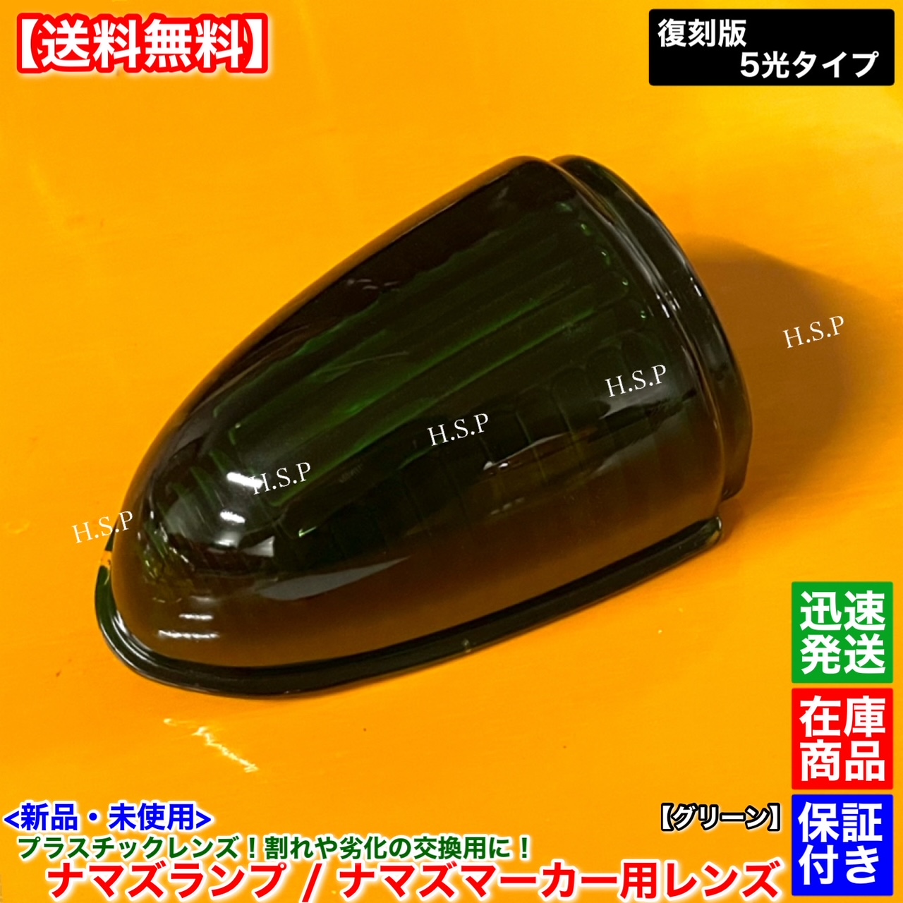 新品 ナマズマーカー グリーン 緑色 レンズ 単品 1個 400mm用 復刻 樹脂製 ナマズランプ 五光ガラス ルーフ 屋根 電飾 デコトラ 交換 カスタム