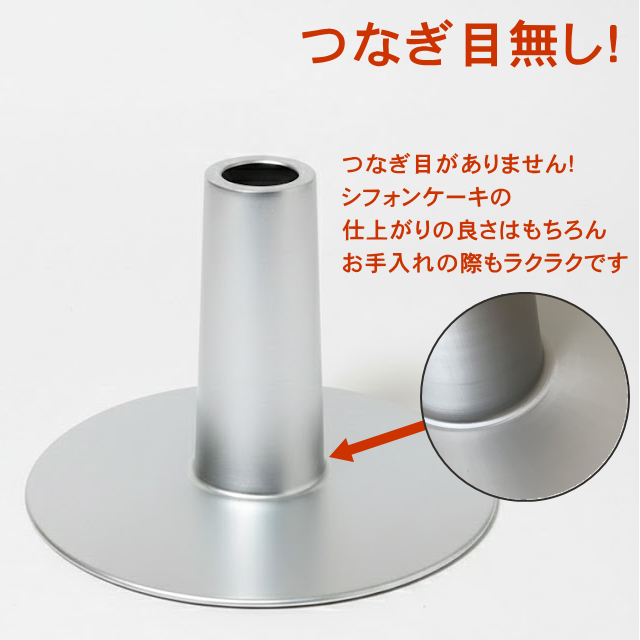 | A:シフォン型は密閉容器ではないため隙間が見える場合があります。また、国産アルミの成型跡が傷に見えることがありますが、性能には問題ございません。 |