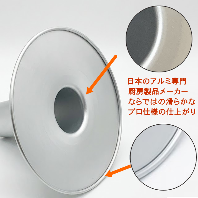 老舗メーカーが作る確かな品質 日本指折りのアルミ製品メーカーが手掛けるプロ仕様。熱伝導率に優れたアルミ合金にアルマイト加工を施し、耐久性と使いやすさを両立しました。全国の有名洋菓子店でも実際に愛用されている「プロの道具」です。 |