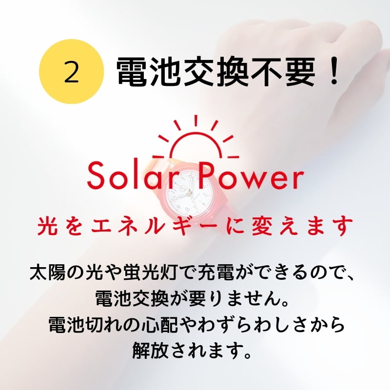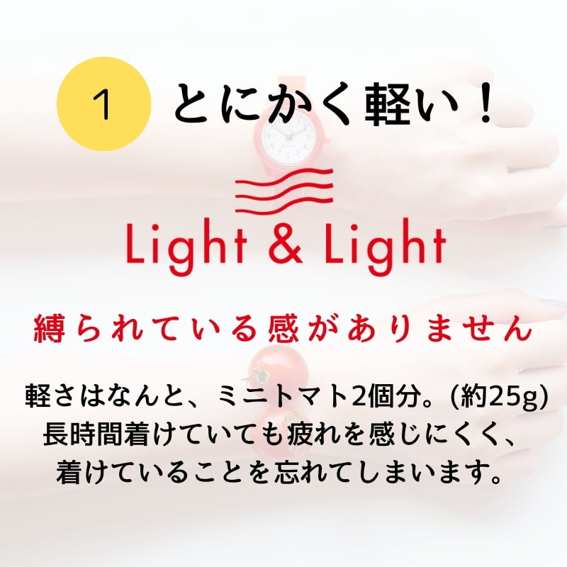 | Q&Q(キューアンドキュー)は、Quality(品質の良いものを)&Quantity(より多くの人へ)のコンセプトのもとに生まれたシチズンのディフュージョン(普及版)ブランドです。シチズンという安心のメーカーが送り出すモデルは、大変コストパフォーマンスに優れております。プレゼントにも最適なオススメなブランドです。環境にやさしいソーラー電源時計と時刻合わせ不要の電波時計を中心とし、HELLO KITTYや、スヌーピーでお馴染みのPEANUTS(ピーナッツ)など幅広く商品を揃えています。そのほかにもスタンダードなものやファッション性に優れたものまでデザインやクォリティにこだわった商品を展開しています。 Solar Power 光をエネルギーに変えます。 太陽の光や蛍光灯で充電ができるので、 電池交換が要りません。 Water Proof 突然の大雨だって平気です。 水に強いから、アウトドアレジャーを楽しむときも、 家事をするときも取り外す手間がかかりません。 Light&Light 縛られている感がありません。 軽さはなんと、ミニトマト2個分。 長時間つけていても、スポーツをしていても 疲れを感じにくく快適です。(平均約25g) |