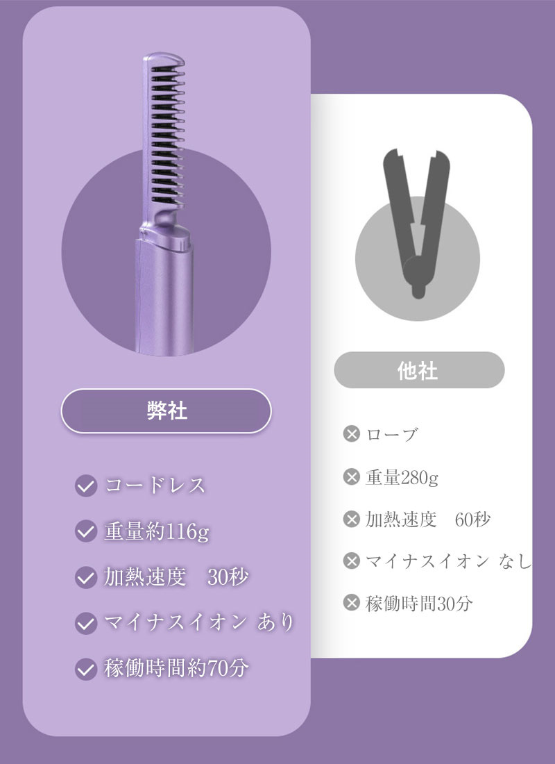 ◎耐熱保護プレートによる発熱、ヘアアイロンブラシは火傷防止シェルの設計を採用しているため、やけどをしたり、熱くてびっくりするような心配なく、髪を真っ直ぐにケアすることができます。