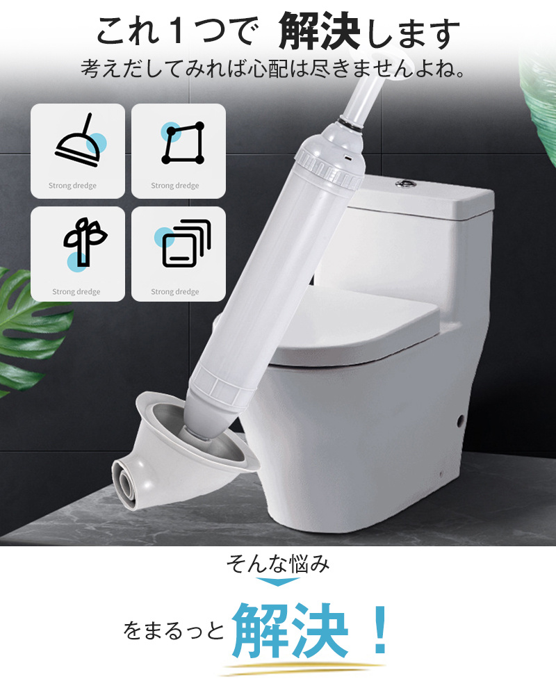V字の先端、加圧式のポンプで水をしっかり密着して吸引排出するため、従来のすっぽん(ラバーカップ)に比べ効果絶大!細い先端は配管にフィットしやすく、操作がスムーズです。