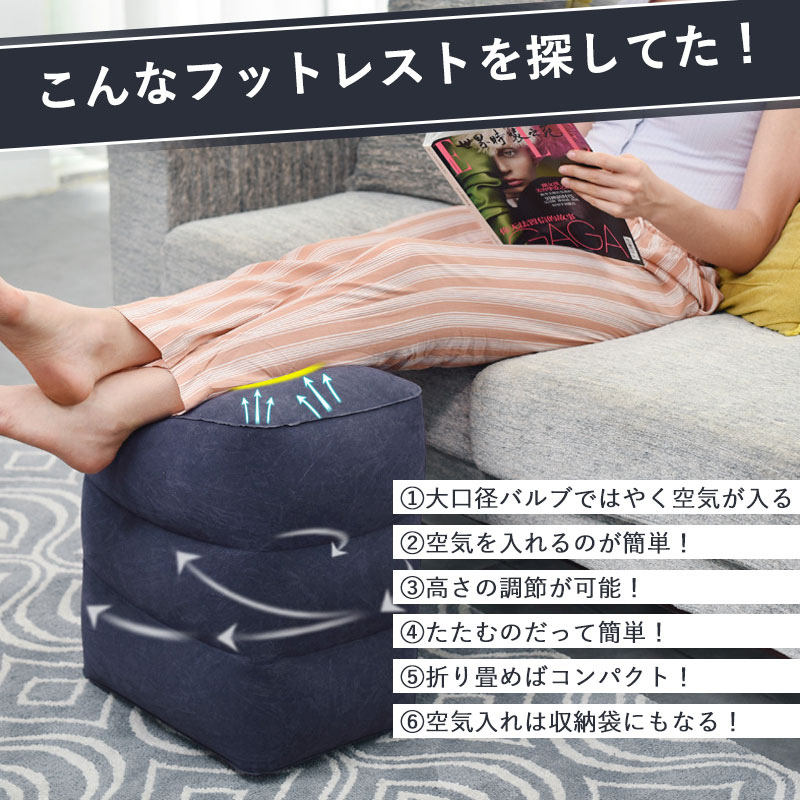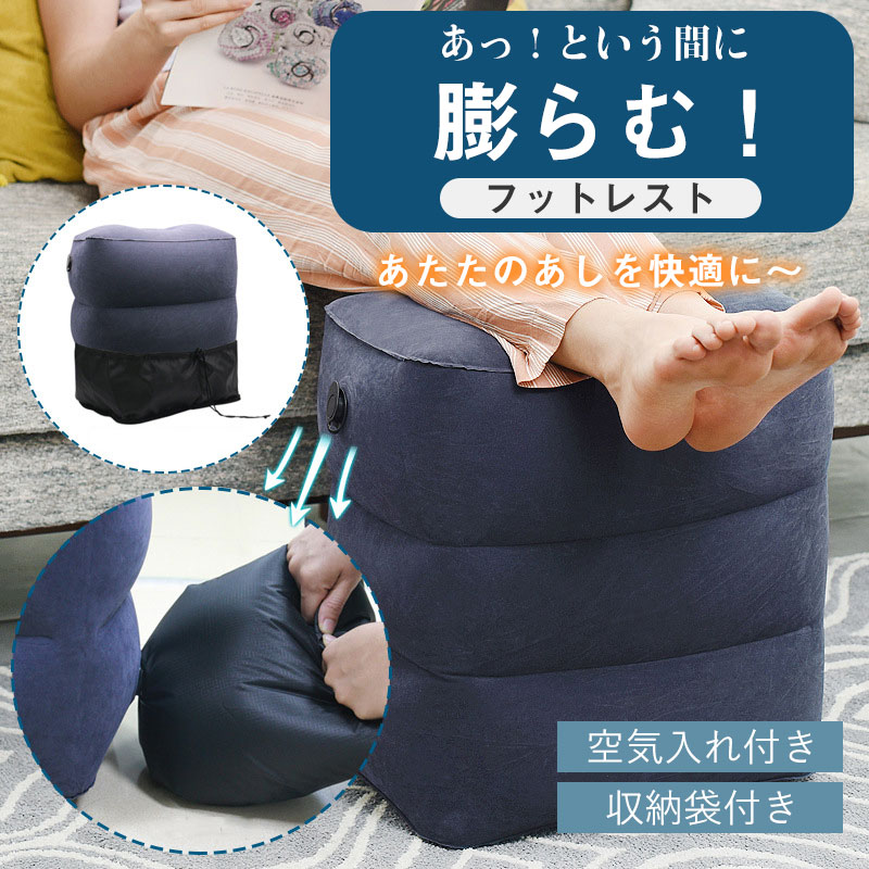 即納 フットレスト 飛行機 エアー 車 新幹線 足枕 足置き クッション デスク 空気入れ付き 収納袋付き 送料無料 ポンプ不要 オットマン プレゼント ギフト