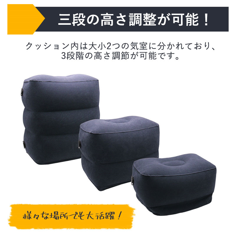 【キーワード】 クッション デスク 椅子帰省 温泉 旅行 新幹線 長距離 バス 空気入れ付き ポンプ不要 オットマン 送料無料 父の日 母の日 プレゼント ギフト 誕生日 フットレスト 飛行機 エアー 車 新幹線 足枕 足置き デスク 収納袋付き