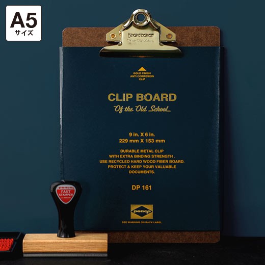 オフィスの定番、大人気クリップボードにゴールドが登場。アメリカ映画にそのまま出てきそうな昔ながらのスタンダードな形。がっしりとした金属製のクリップは強力で1度書類を掴むと離しません。こちらはデスク脇のメモ取りや伝票挟みなどに大活躍です。結婚式の芳名帳(ゲストブック/A5)を挟むバインダーとしても人気です。