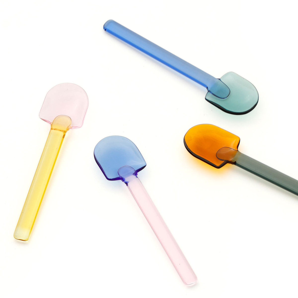 amabroの耐熱ガラスで作られた小ぶりなサイズのスプーンです。ティースプーンや、デザートスプーンなど、さまざまな用途でご使用いただけます。2色のガラスを用いた鮮やかなカラーリングが美しく、日々の暮らしに彩りを与えてくれます。同シリーズのデザートボウル「SNOW BOWL」 と共に「雪かき」をテーマにしており、こちらはシャベルの形をモチーフにしています。ボックス入りで大切な方へのギフトにもおすすめです。