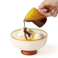amabro(アマブロ)の耐熱ガラスでつくられた小さなピッチャーです。柔らかなミルクガラスと透明なカラーガラスのバイカラーが印象的。容量は70mlで、ミルクピッチャーやサラダドレッシング用になど、様々な用途にご使用いただけます。鮮やかなカラーリングがホームパーティなどのおもてなしにはもちろん、普段の食卓にもアクセントを加えてくれそうです。