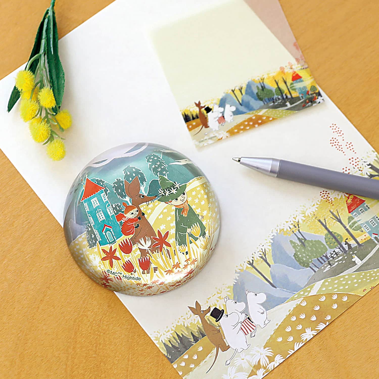 ムーミンのクリスタルガラスのペーパーウェイトです。ドーム型でどの角度から見てもイラストをお楽しみいただけます。しっかりと重さもあり、実用性も◎。 BOX付きで、ムーミン好きの方へのギフトとしてもおすすめです。滑り止め付き。