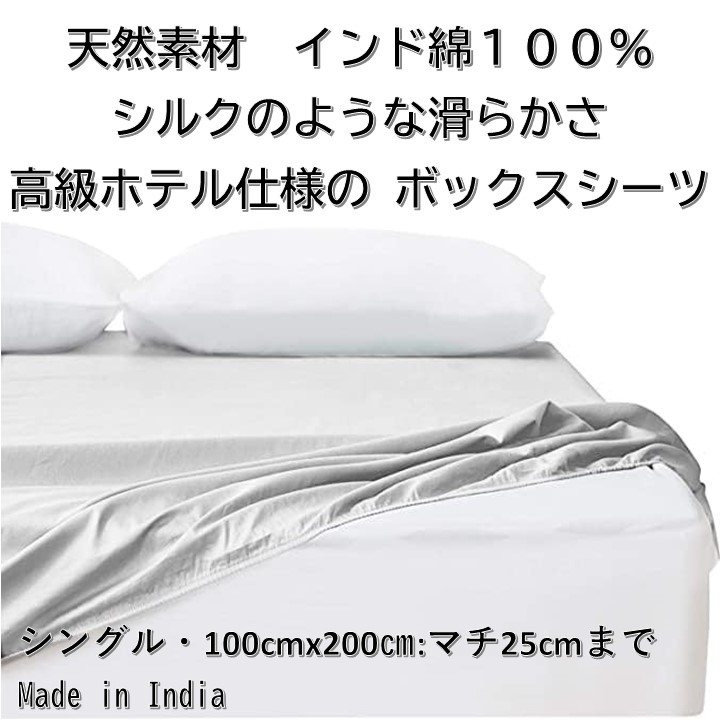インド製 ホテル仕様 ボックスシーツ シングルサイズ 100cmX200cm 無地染 インド綿 綿100% 天然素材 洗える 布団カバー 洋式ベッドシーツ