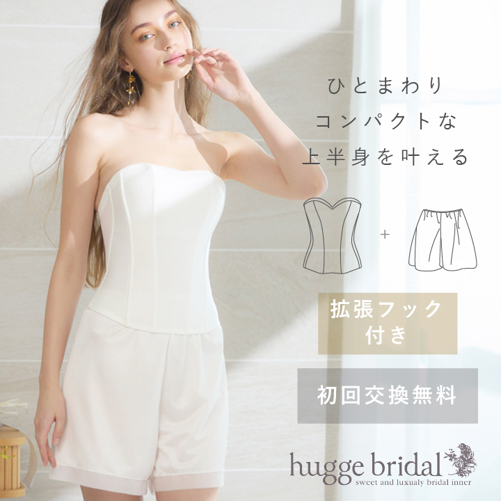 着こなしも軽やかなフレアパンツ。摩擦を防止し、着慣れないドレスの足さばきをスムーズにします。 Aライン、プリンセスライン、エンパイアのドレスをお召しになる方におすすめ。 ![]() ![]() | ||
