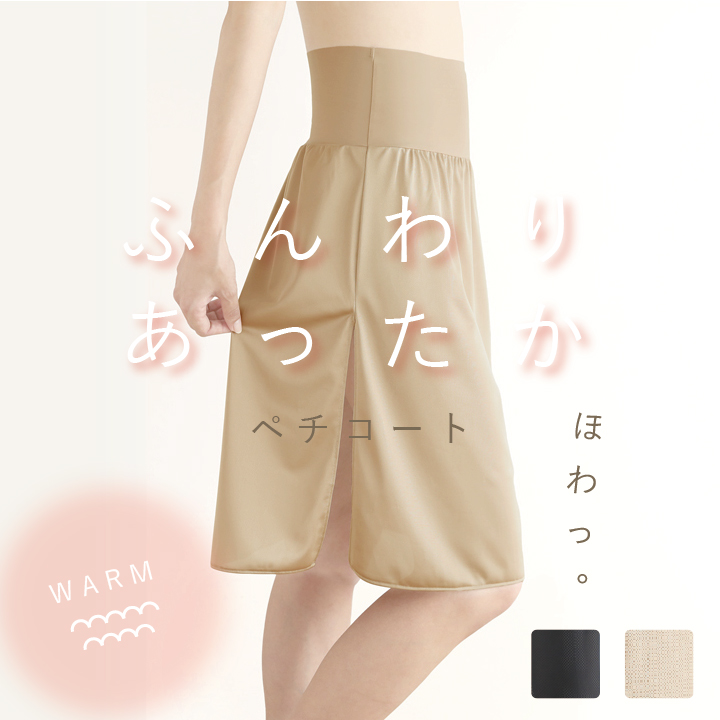 シンプルなデザインと、なめらかな微起毛が気持ちいい、裏起毛ペチコート。