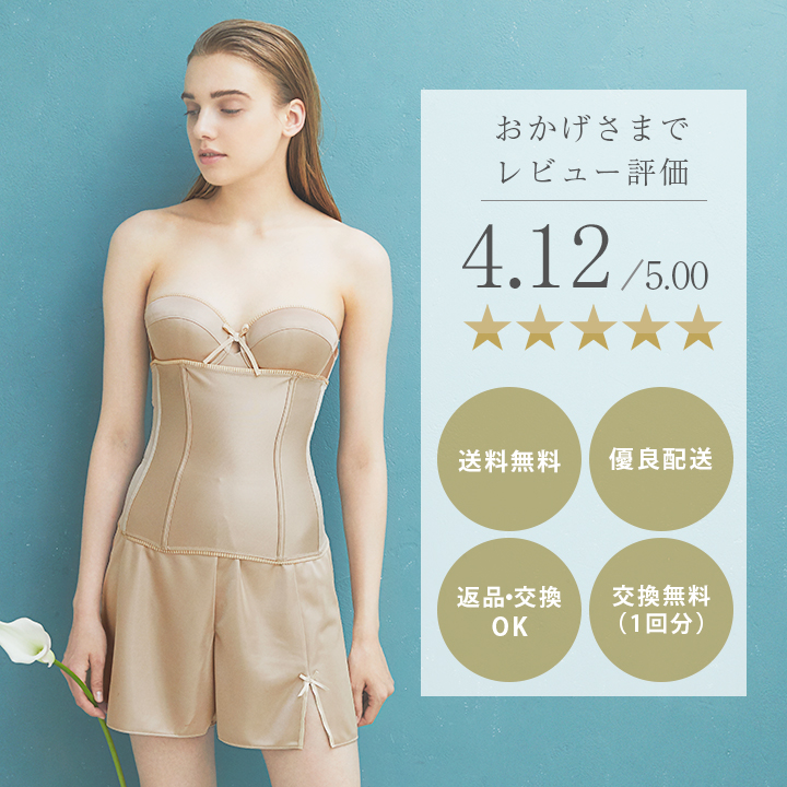 | サイズ | B65、B70、B75、B80、C65、C70、C75、C80、D65、D70、D75、D80、E65、E70、E75、E80 ※ドレスは、本来B,Cカップ以上の大きさが標準です。Aカップのお客様には、付属のパッドで調整していただくことをオススメしております。 |