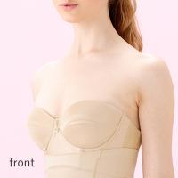 1.脇肉がスッキリ 脇に流れがちなバストのお肉は、サイドの2本のボーンと、2重構造の生地で、しっかりとキャッチし、補正します。 バスト脇がスッキリとし、シャープなバストラインを作ります。