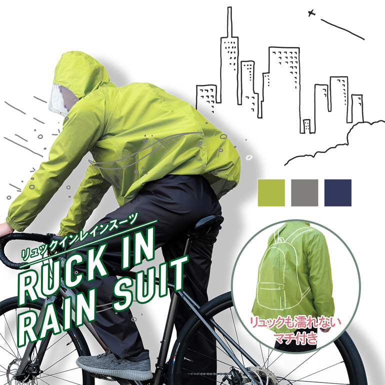 雨の日の通勤やレジャーを快適にするリュックインレインスーツは、