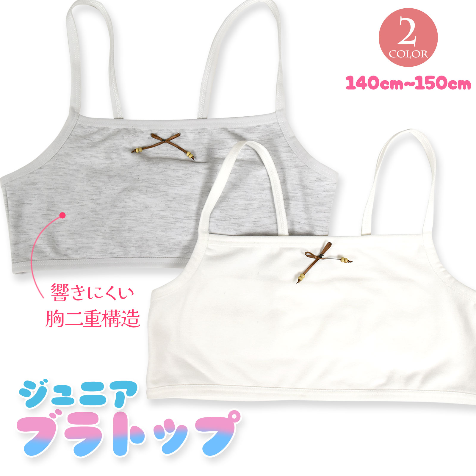 おすすめ ポイント | ■透け防止の胸二重ジュニアブラ。 ■綿素材で快適な着心地。肌への摩擦や刺激が少なく、肌に優しい。 ■ストレッチ性のある生地。 ■ホックがないため、着脱が簡単。 ■締め付け感が少ないやわらかいゴム仕様。 ■ファーストブラとしても最適です♪ |