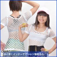 ヒップホップ衣装 メッシュあみあみ半袖トップス tシャツ 半袖 シースルー トップス 肌見せ 黒 白 FP75210 [M便 1/2]