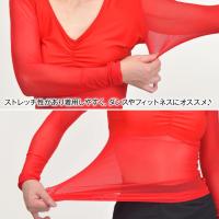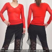| おすすめ ポイント | ■お腹と袖がシースルーになっているセクシートップス。 ■Vネックで胸元にシャーリングが入っているので、女性らしいセクシーな印象♪ ■中にブラトップを合わせて一枚で着てもGood!薄手なのでインナーとして着てもOK!! ■ストレッチ性があるので動きやすく、ダンスやフィットネスに最適★ |