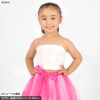 | おすすめ ポイント | ■衣装に合わせて着丈が選べる3サイズチューブトップ。 ■ストレッチ性抜群。キッズ110cm〜140cmまで着用いただけます! ■柔らかく着心地の良いストレッチ性のある生地。 ■上と下にゴムが入っており、動いてもズレにくくなっています。 ■ストラップ用ループ付き。透明ストラップをプレゼント♪♪ ■ずり落ちるのが心配な場合、ストラップをつけて着用でき、どんなジャンルのダンスにも大活躍! |
