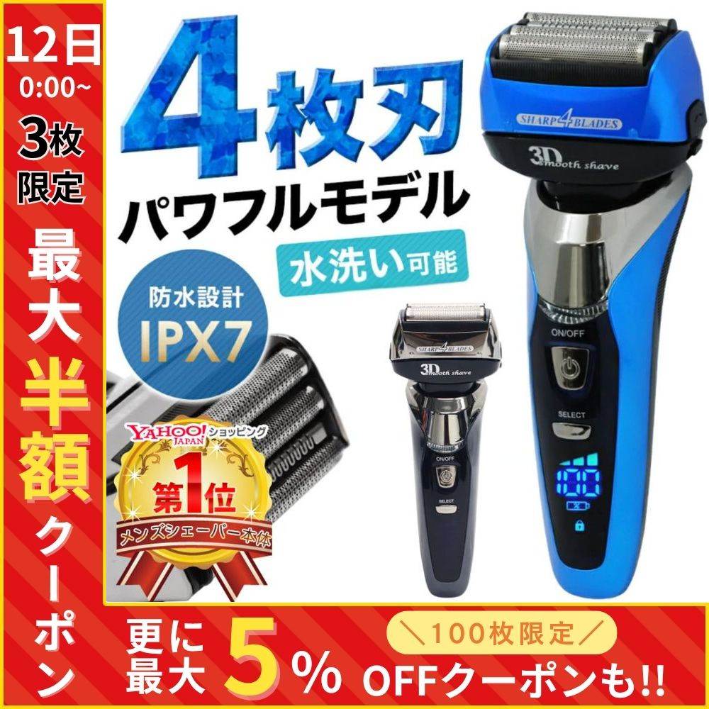 髭剃り メンズ 4枚刃 電気シェーバー 深剃り 電動シェーバー 充電式 防水 ipx7 水洗い 顔 シェーバー 男性 電気 電動 男 ひげそり ヒゲソリ 清潔感 メンズ美容