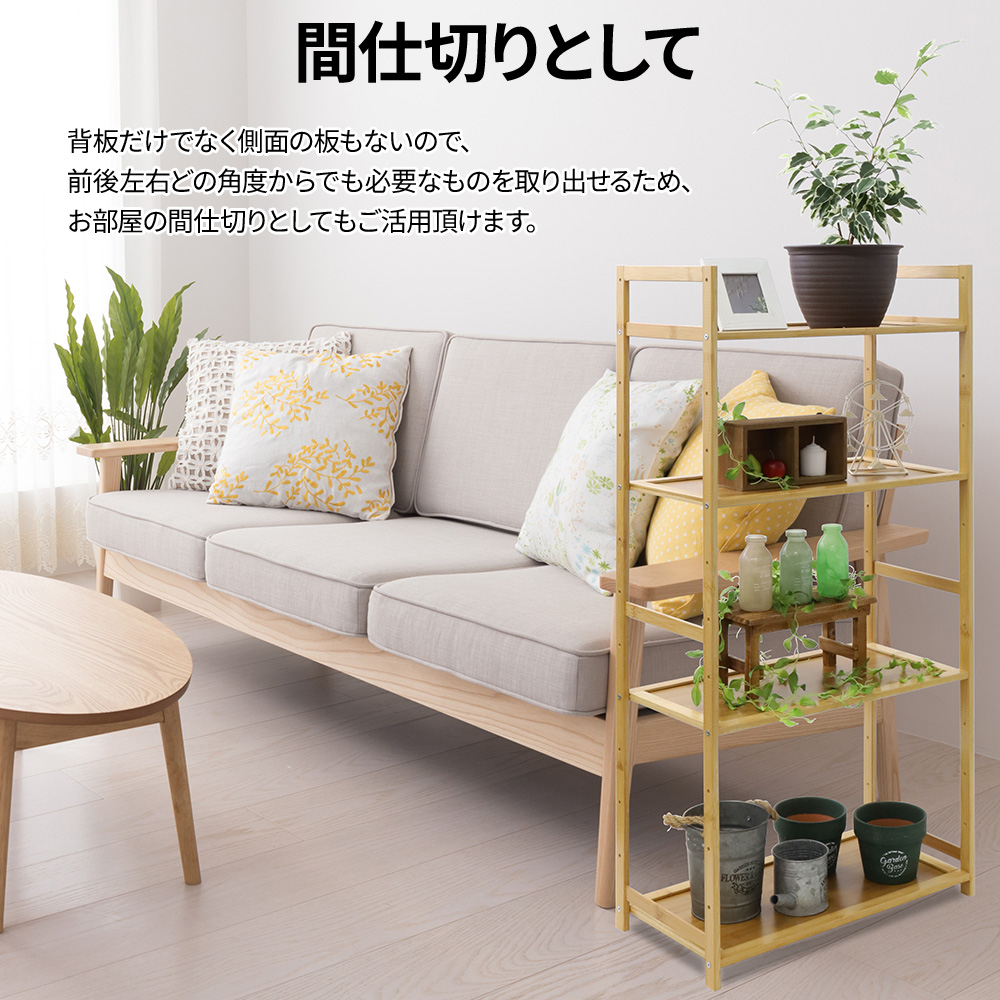 棚 ラック 3段 4段 おしゃれ 収納 オープンラック 奥行薄い ウッドラック 高さ調節 軽量 幅50 オープンシェルフ リビング 竹製 収納棚