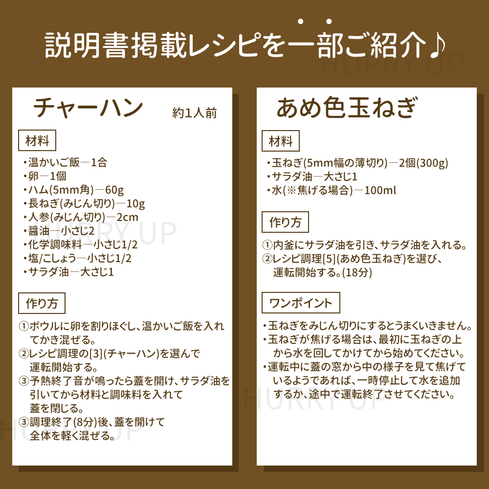 小型な自動調理器 大きすぎない手頃なサイズ。 約2人前の料理が簡単にできます。 1人暮らしの方、単身赴任中の方にもおすすめです。