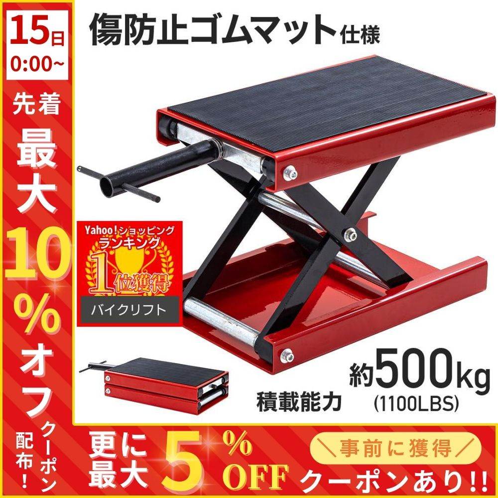 バイクリフト バイクジャッキ ゴムマット付き 500kg バイクリフトジャッキ 整備 作業 修理 バイク リフト 高さ調節 バイクスタンド メンテナンス