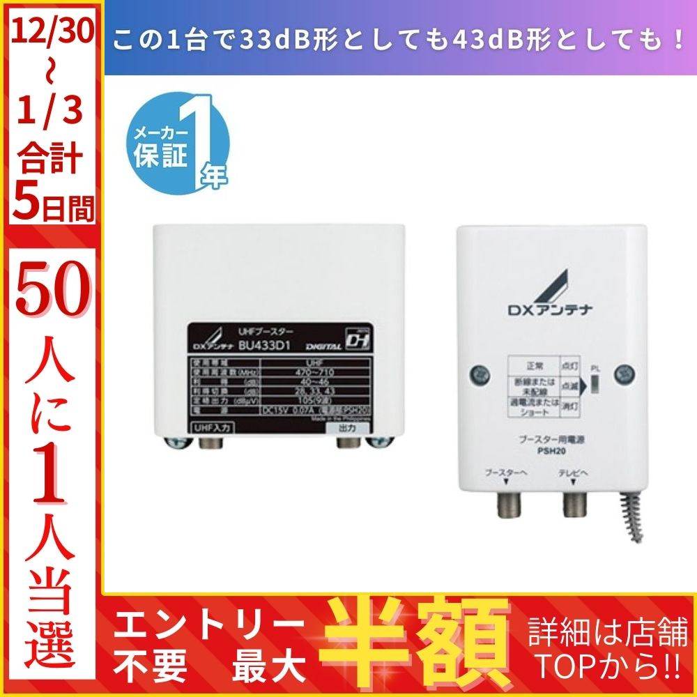 DXアンテナ UHFブースター エレコム 屋外用 33dB/43dB共用形 小型 正規品 ホワイト BU433D1 デュアルブースター スイッチ一つで切り替え可能