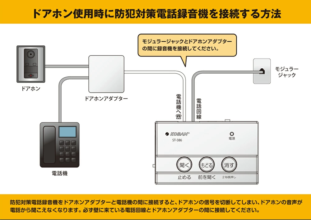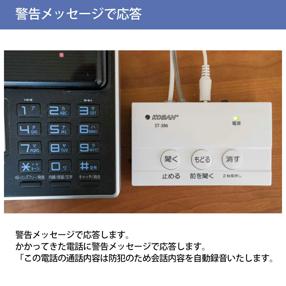 電話録音機 防犯対策 工事不要 ANABAS アナバス KOBAN ST-386 電話機 電話 録音機 電話録音装置 通話録音 振り込め詐欺対策 オレオレ詐欺対策 迷惑電話 送料無料