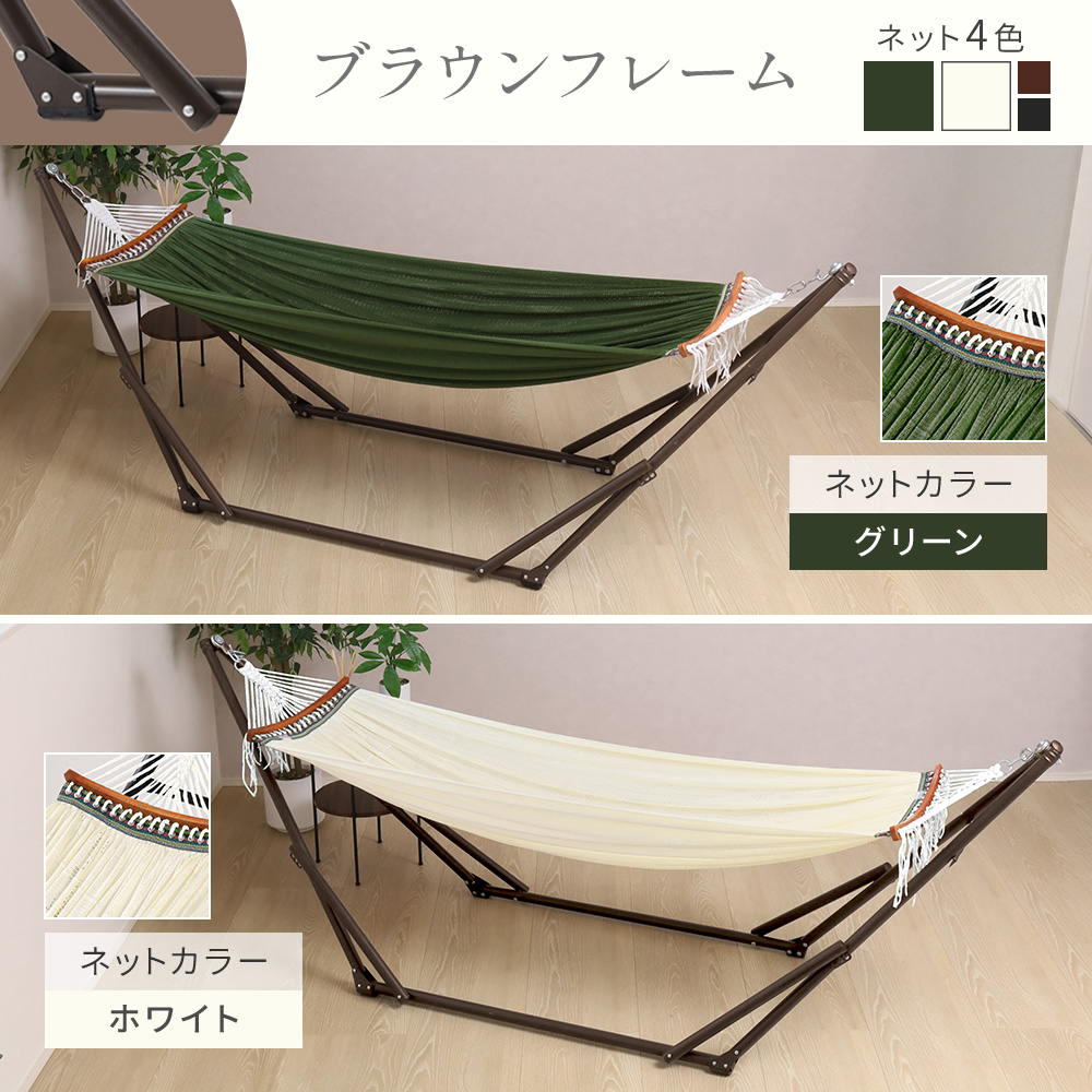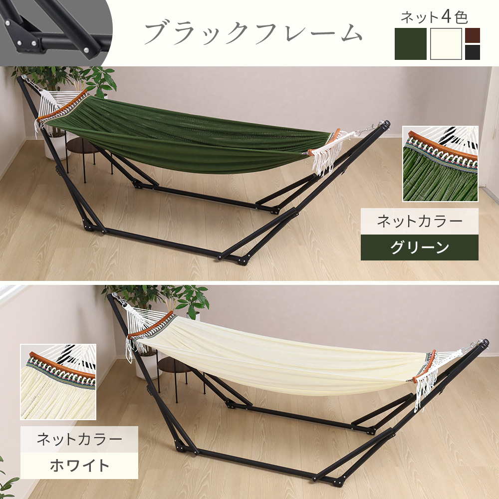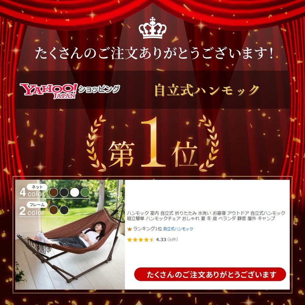 | 【寝心地をとことん追求】 寝心地を追求した設計で、心地良い揺らぎと安定感を両立。 ワイド伸縮ネットが身体全体を優しく包み込むようなフィット感を実現します。 【角度、高さを調節できる】 フレームとネットを固定する位置で、高さ・角度を調節できます。 テレビを見るときは頭を高くしてみたり、脚を高くしてゆったりくつろいだり、 ぜひ自分好みにカスタマイズしてみてください。 【安心の耐荷重350kg】 国内品質試験をクリアしており、親子でも安心してご使用いただけます。 【工事不要&折りたたみ式】 簡単4ステップでどこでも設置可能。 使わない時はコンパクトに折りたたみ、 付属の収納バッグに入れれば持ち運びもできます。 【選べるカラー】 インテリアに合わせやすい、豊富なカラーバリエーションをご用意。 お好みの色で、お部屋を彩ります。 【季節を問わず使える】 「暑い季節」 通気性の良いハニカムネットは、熱がこもりにくく、涼しい風を感じながら快適にお昼寝を楽しめます。 「寒い季節」 ブランケットやクッションを添えれば、優しい揺れが心地よい暖かさを演出し、ゆったりとした時間を過ごせます。 【抜群の通気性】 ハニカム構造による優れた通気性で、汗や湿気を素早く発散。 蒸れにくく、一年中快適な寝心地を体感できます。 【天然バーで支えるゆったり幅】 天然アカシア材がネットの幅を広げ、ハンモック特有の窮屈感を解消し、常にゆったりとした幅を保ちます。 【手洗い可能】 ネットは手洗いできるため、いつでも清潔を保てます。 【静音設計】 丈夫で滑らかなペアリングにより、自然な揺れとスムーズな動きが実現。 不快な摩擦音を最小限に抑え、穏やかなリラックスタイムを楽しめます。 |