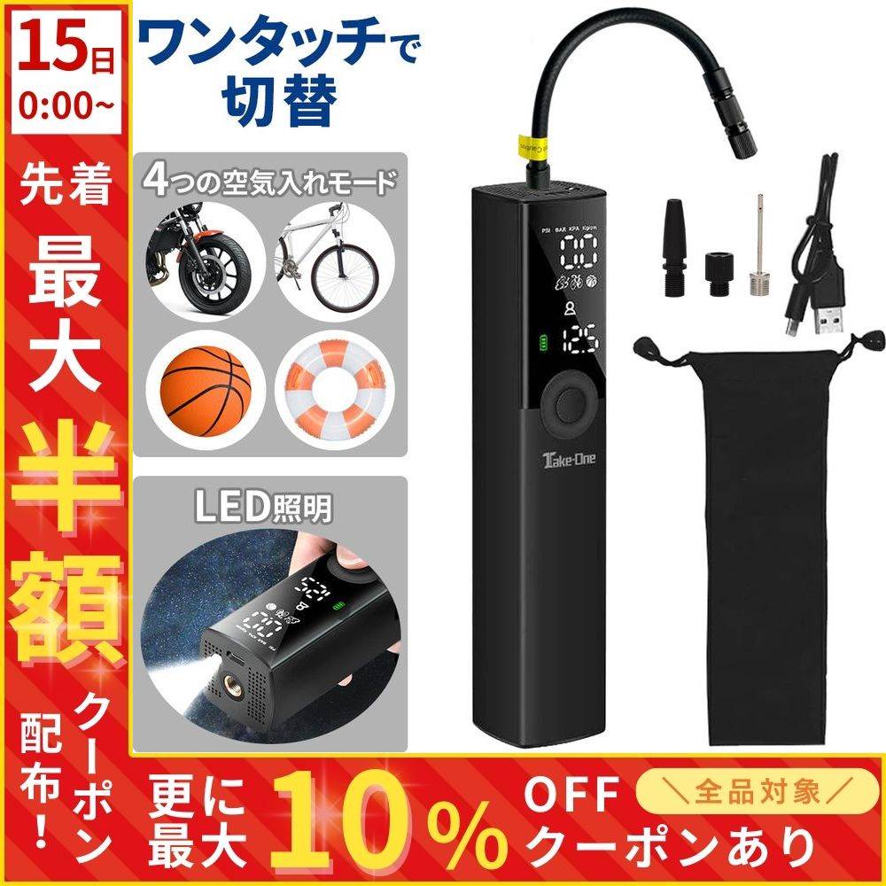 電動 空気入れ 自動車 充電式 車 バイク 自転車 ボール タイヤ 浮き輪 typec コンプレッサー 軽量 小型 事故 防止 防災
